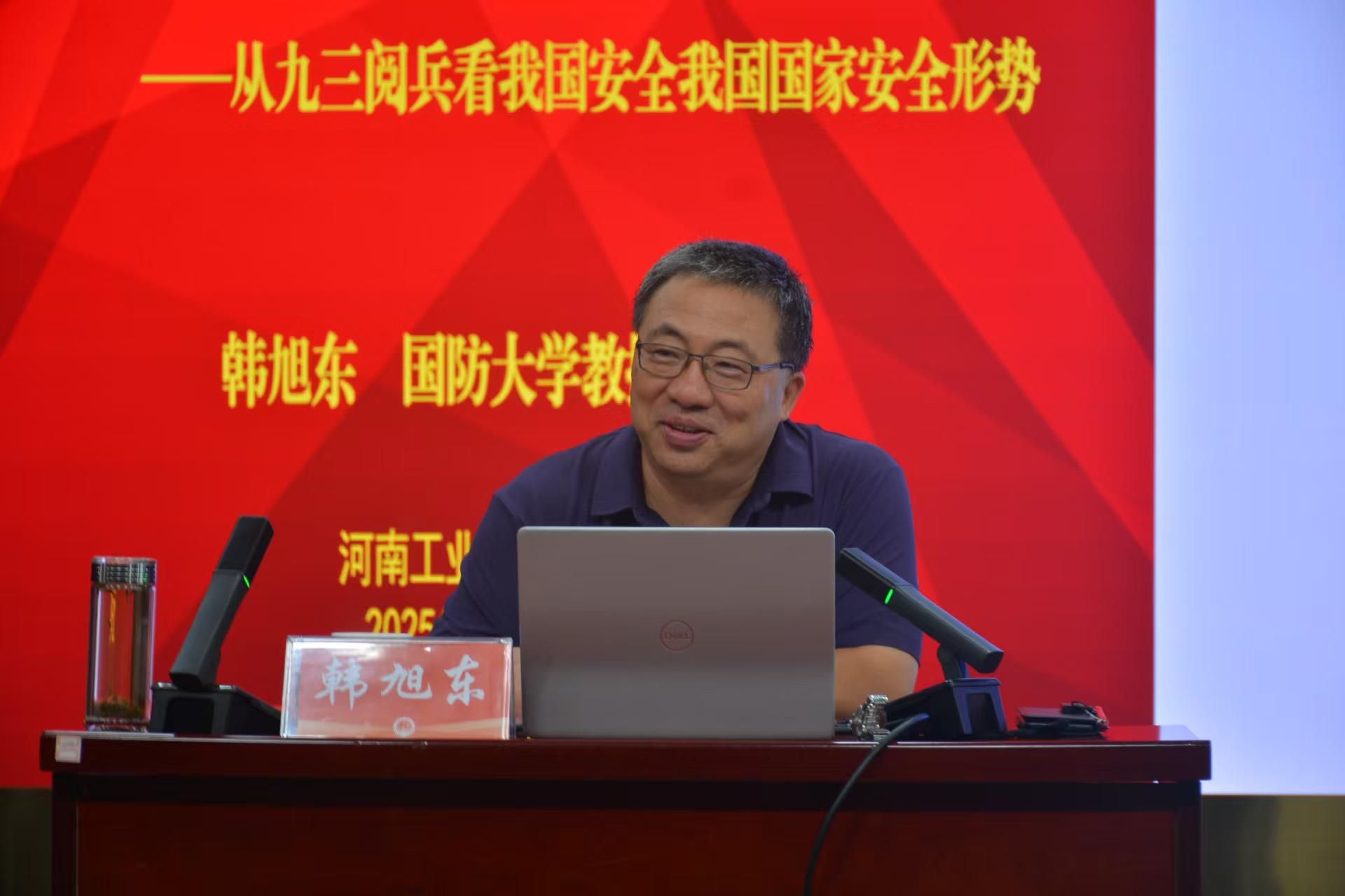 报告会上,韩旭东结合2025年“九三阅兵”的震撼画面,从乌克兰危机、巴以战事、台海局势等热点切入,系统梳理百年变局下大国博弈的新特点,深入阐释总体国家安全观的丰富内涵。他指出,当今世界安全威胁日趋多元,国防已不仅是“军装”的责任,更是全体公民的共同课题;“00后”大学生应把爱国情、强国志、报国行自觉融入新时代追梦征程,在维护国家安全的伟大实践中绽放青春光芒。报告金句迭出、纵横捭阖,现场掌声不断。