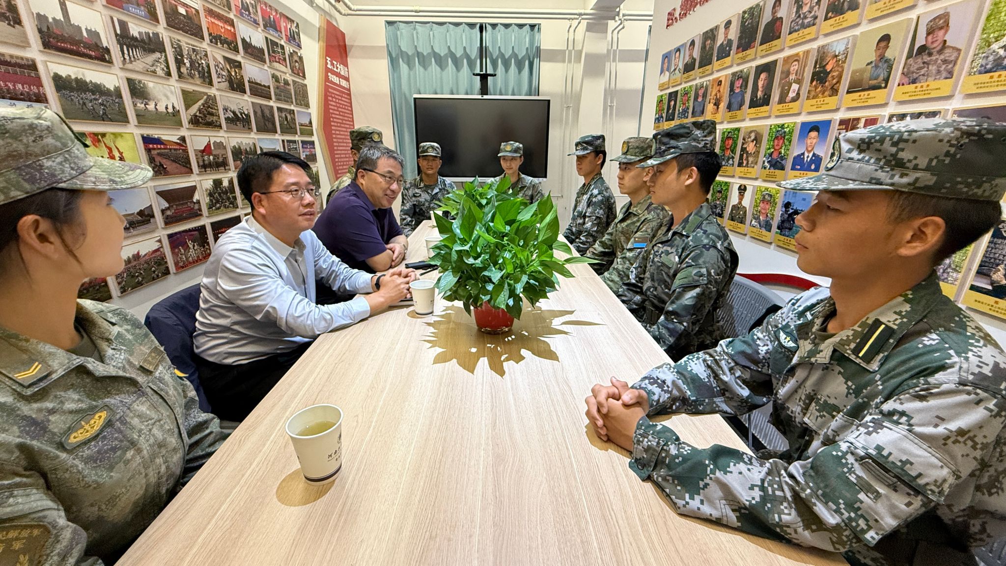 9月27日晚,韩旭东走进勤园“一站式”学生社区国防教育展厅,与退役大学生围坐畅谈,勉励大家把军营锻造的过硬作风带回校园,“让小我融入大我,让青春与祖国双向奔赴”。
