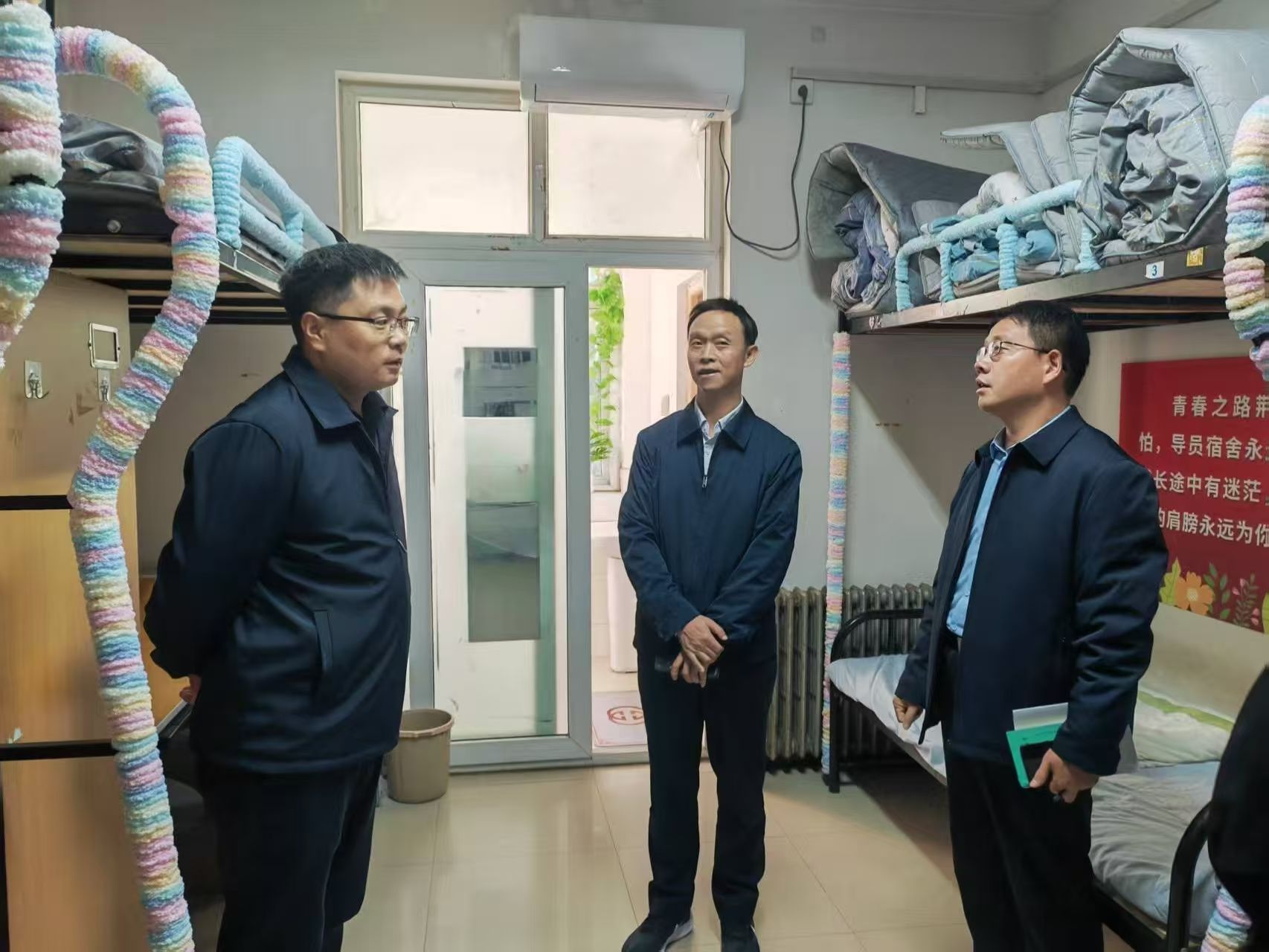 为进一步推进学生社区建设,提升辅导员工作室育人实效,10月13日,校党委副书记黄泽峰及学工部负责人与各学院党委副书记一同深入学生社区,对分布其中的30个辅导员工作室进行了实地走访调研,并随后在勤园“一站式”学生社区召开专题会议,听取汇报并部署下一步工作。