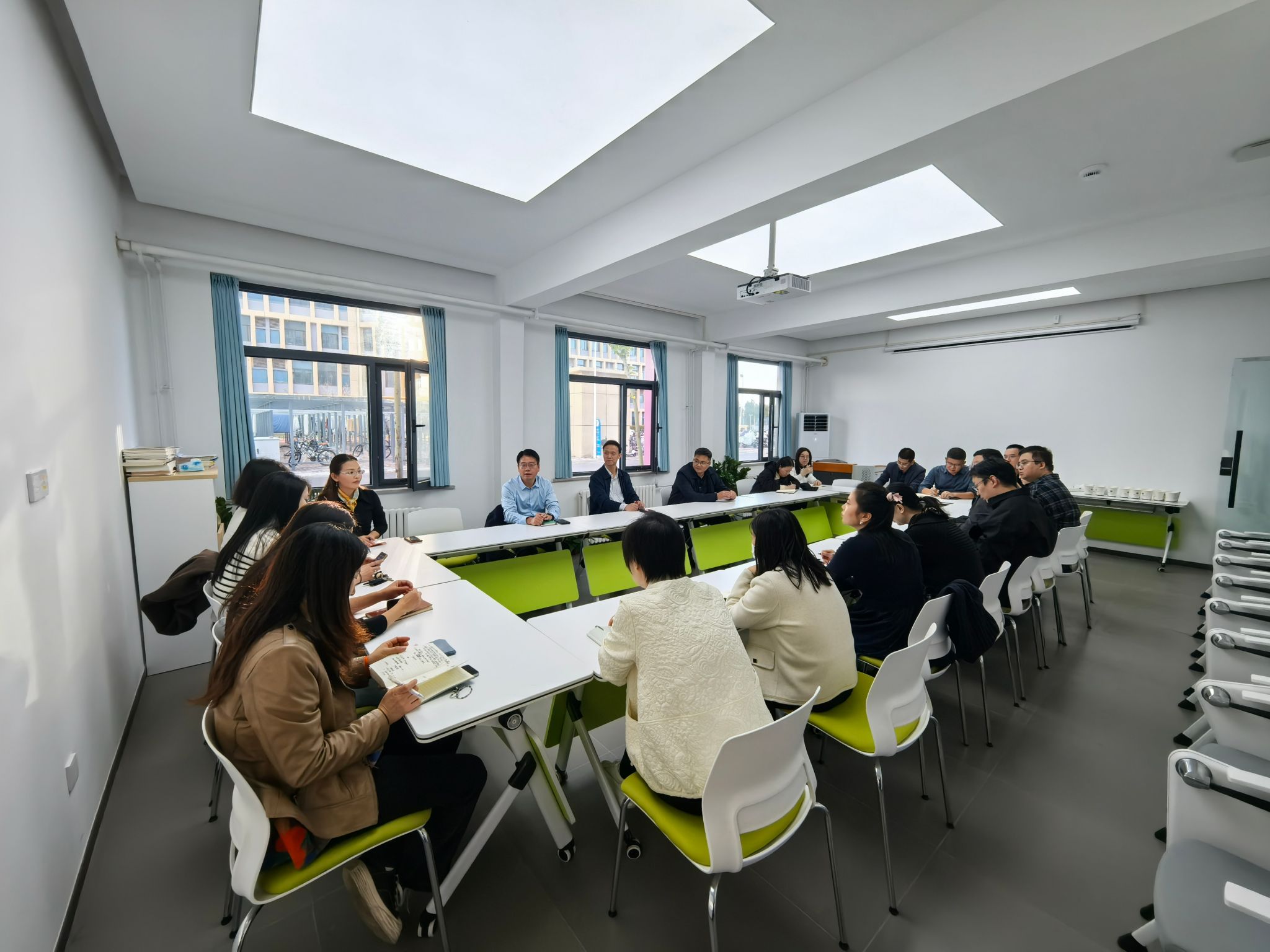 实地参观结束后,全体人员在勤园“一站式”学生社区举行工作交流会。各学院党委副书记依次发言,分享了参观兄弟学院工作室后的感想与启发,并结合本院实际,围绕如何优化工作室功能、提升服务效能、打造工作品牌等方面,汇报了下一步的改进思路与具体措施。