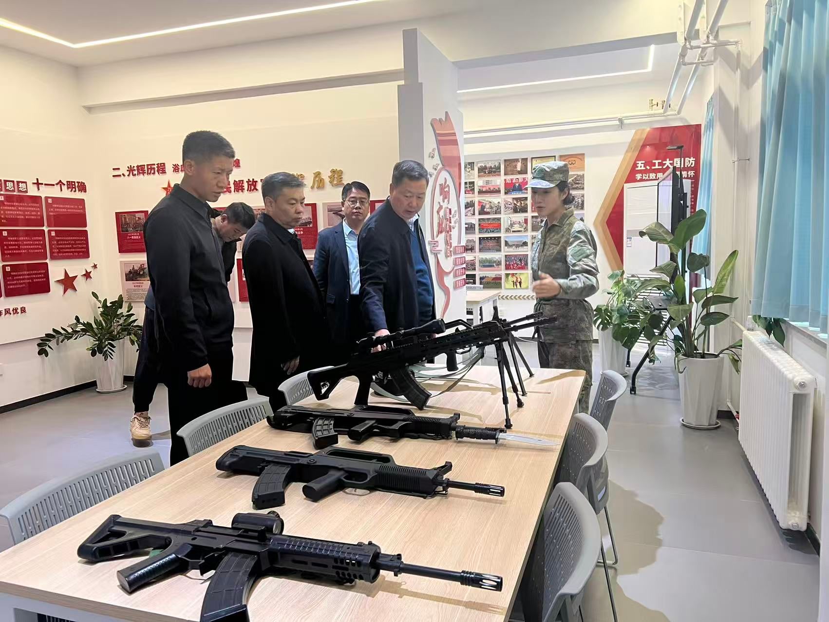 随后,专家组分三个小组同步开展工作:实地查看组走访军事教学设施与场地;访谈组与教师、学生代表进行深度交流;材料组系统审阅教学档案与师资建设文件。调研结束后,全体人员集中听取反馈意见。