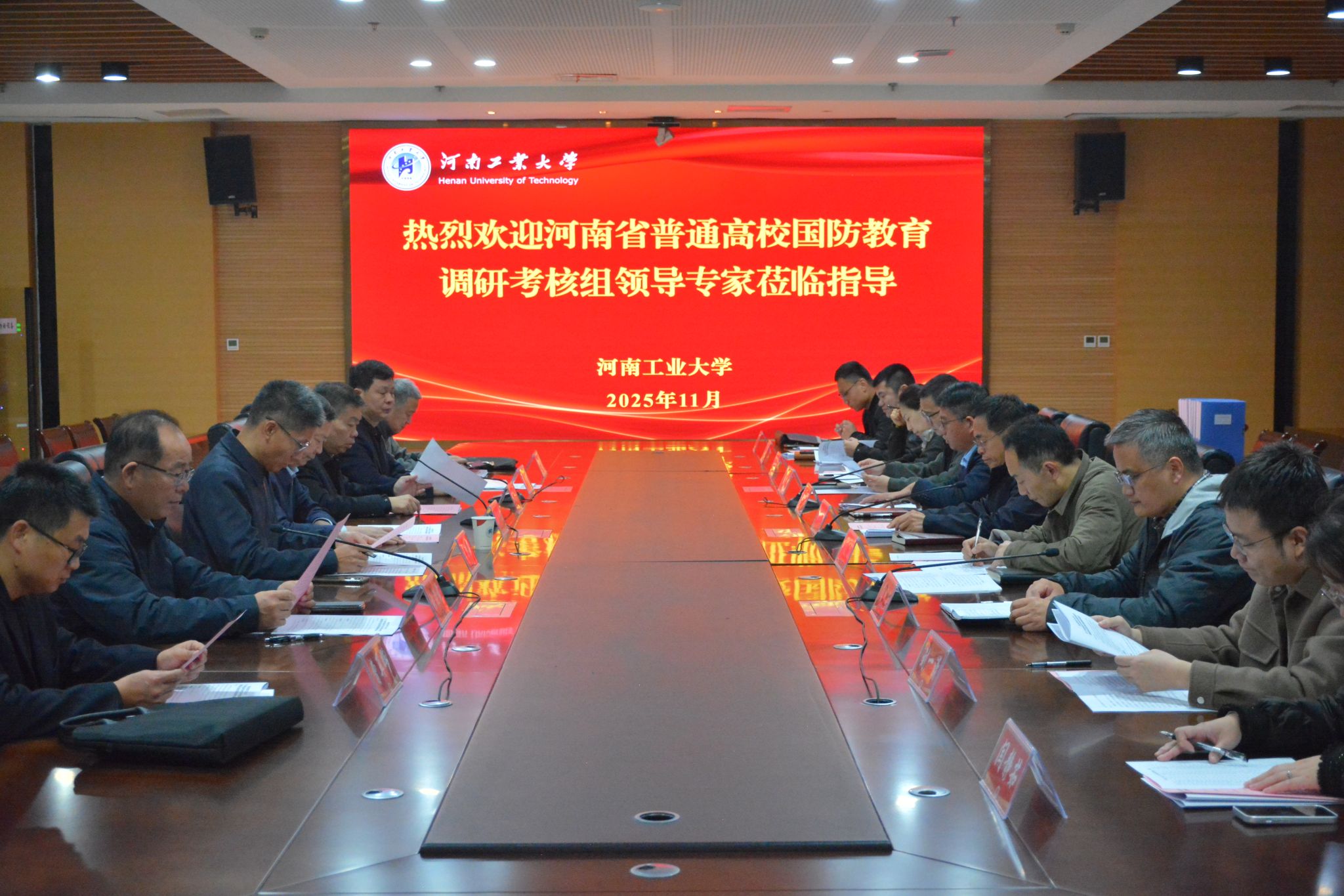 11月11日上午,河南省教育厅军事理论课教学与师资队伍建设情况现场调研会在我校学术报告中心D204报告厅举行。省教育厅体育卫生艺术教育处二级调研员袁均才,以河南中医药大学党委副书记朱建光为组长的专家组一行,以及我校党委副书记、工会主席周相寅出席会议。党委学生工作部、武装部、人事处、教务处、社会科学处相关负责人,军事课教师代表和学生代表参加。会议由党委学生工作部、武装部部长王迪主持。