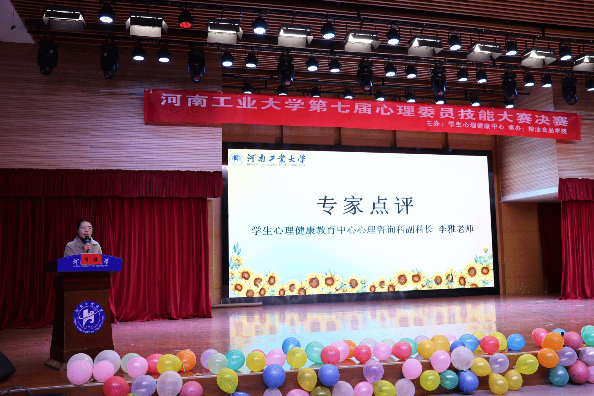11月14日晚,由学生心理健康教育中心主办、粮油食品学院承办的河南工业大学第七届“心赛赋能•护航同行”心理委员技能大赛决赛在自华楼201多功能厅成功举行。学生心理健康教育中心办公室主任尚宇红、心理咨询科副科长李雅、各学院心理专干教师、心理委员代表、粮油食品学院各年级辅导员,以及学生评委等参加活动,与来自全校各学院的参赛选手、学生代表齐聚一堂,共赴这场聚焦心理帮扶、锤炼专业技能的青春盛会。