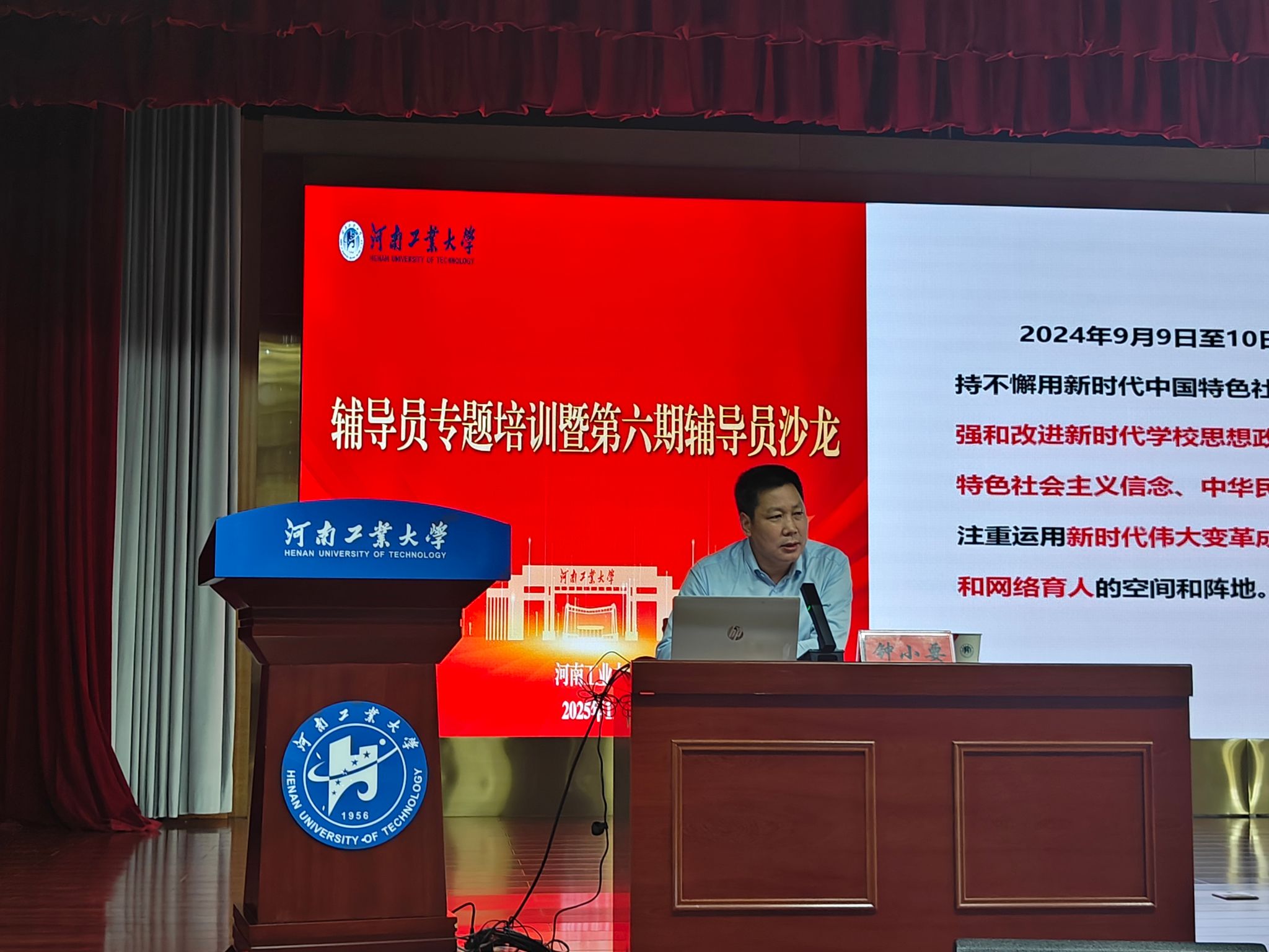 本次培训特邀中国高等教育学会辅导员工作研究分会常务理事、合肥工业大学党委宣传部部长钟小要担任主讲嘉宾。钟部长以“高校辅导员学风建设工作的创新实践与生态重构” 为主题,为与会人员带来了一场内容丰富、见解深刻的专题报告。