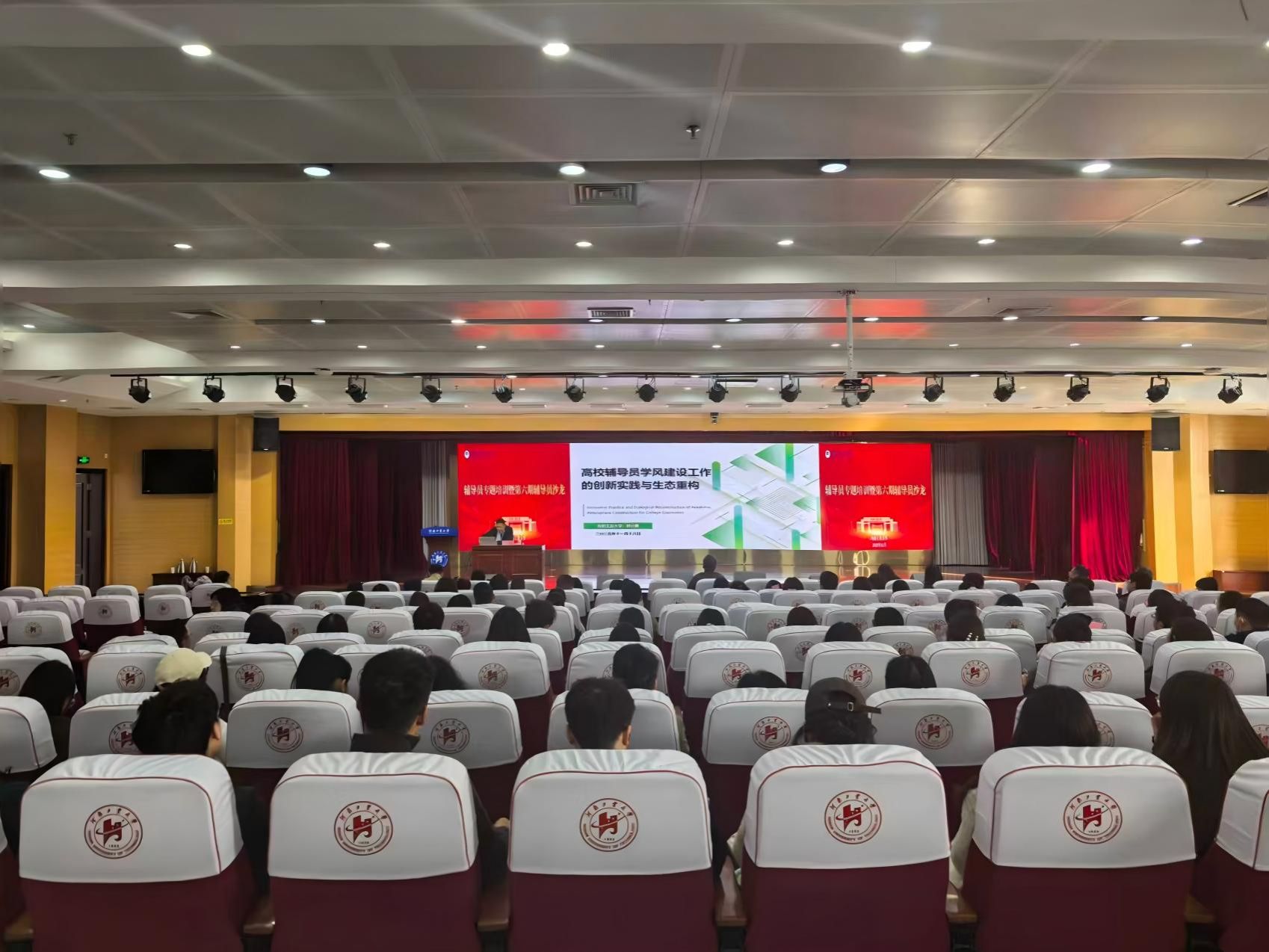 为深入学习贯彻习近平新时代中国特色社会主义思想和党的二十届四中全会精神,进一步落实教育部《高等学校辅导员队伍建设规定》(第43号令)、《普通高等学校辅导员职业能力标准》等文件要求,切实加强辅导员队伍建设,提升学风建设工作的针对性与实效性,11月25日上午,我校在学术报告中心D303报告厅成功举办了辅导员专题培训暨第六期辅导员沙龙。全体专职辅导员及学工部工作人员参加了本次培训。