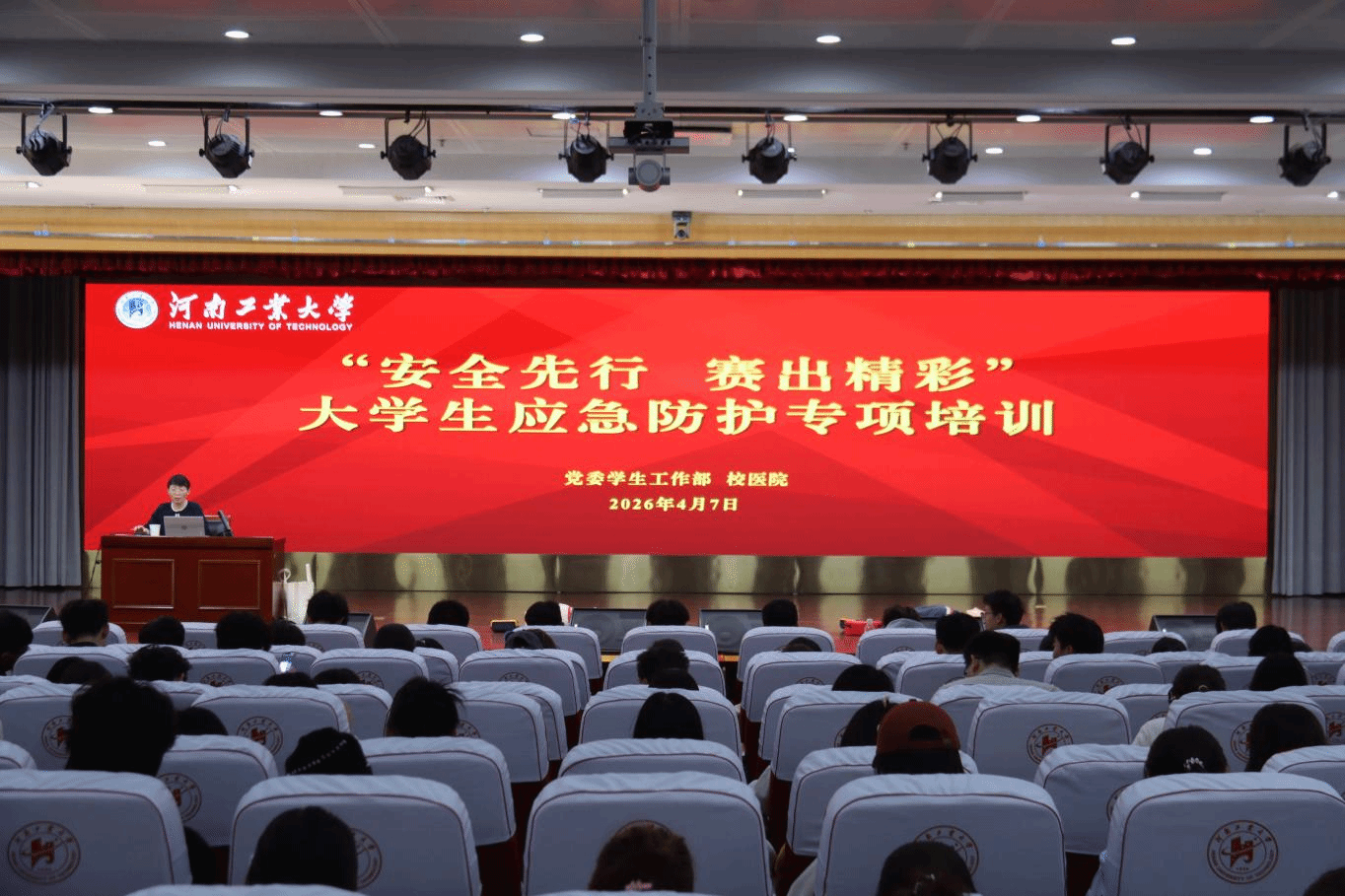 为全面提升第十六届田径运动会学生运动员与志愿服务团队的应急保障能力,切实防范运动伤害事故,4月7日下午,党委学生工作部联合校医院在学术报告中心D303报告厅举办大学生应急防护专项培训。本次培训分两场进行,覆盖800余名学生运动员及志愿服务学生干部。培训会由党委学工部尚拴军老师主持。