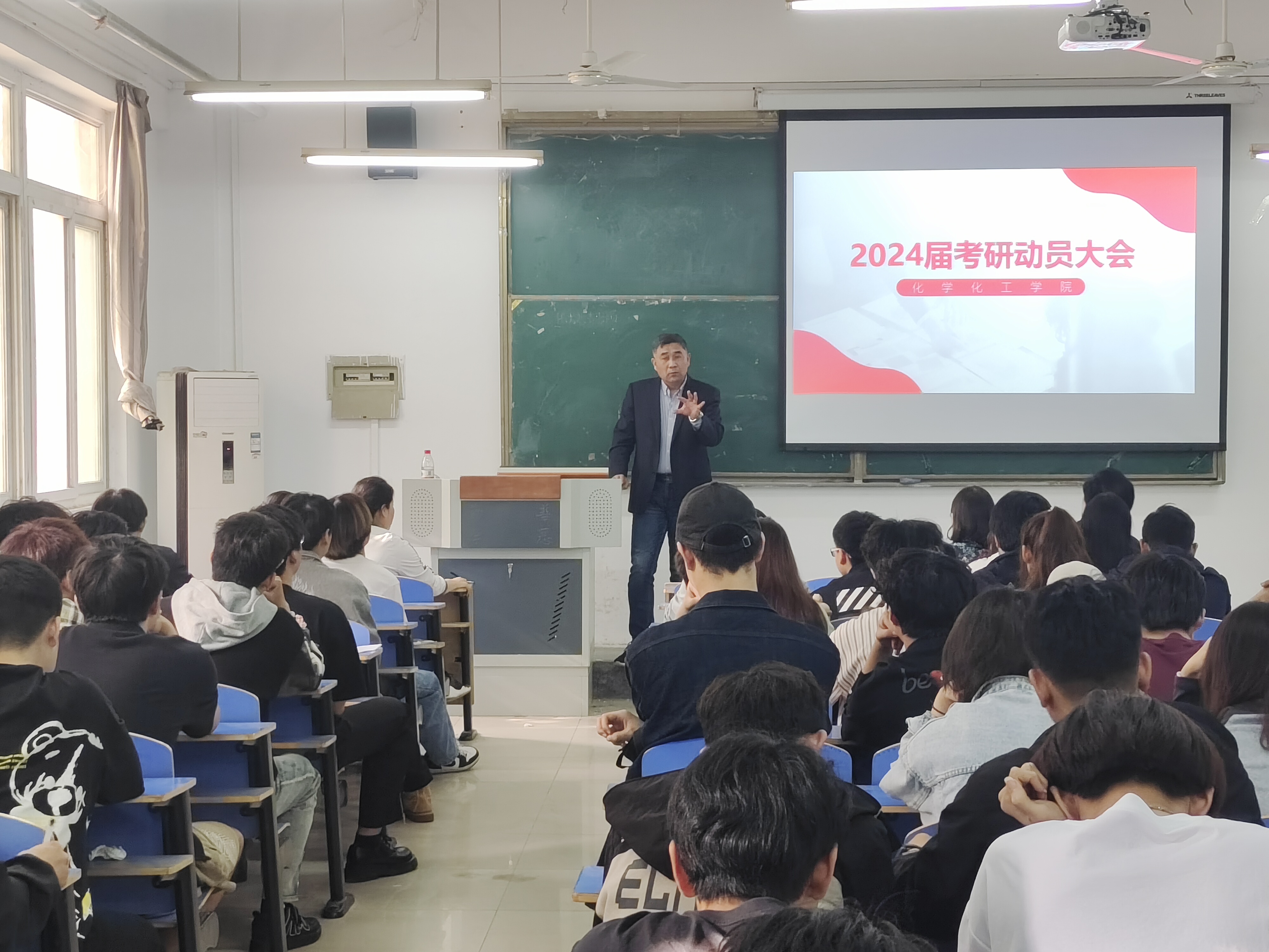 为扎实推进2024届毕业生就业工作,调动学生考研积极性,4月14日—17日,化学化工学院在9141教室分专业举办2024届毕业生考研动员宣讲会。化学化工学院党委书记武威,党委副书记范新爱参加会议,院长助理胡乐乾、化学专业系主任袁金伟、应用化学专业系主任朱利敏、化学工程与工艺专业系主任刘文举担任主讲教师,2024届全体毕业生参加会议。会议由学工办主任张雪主持。