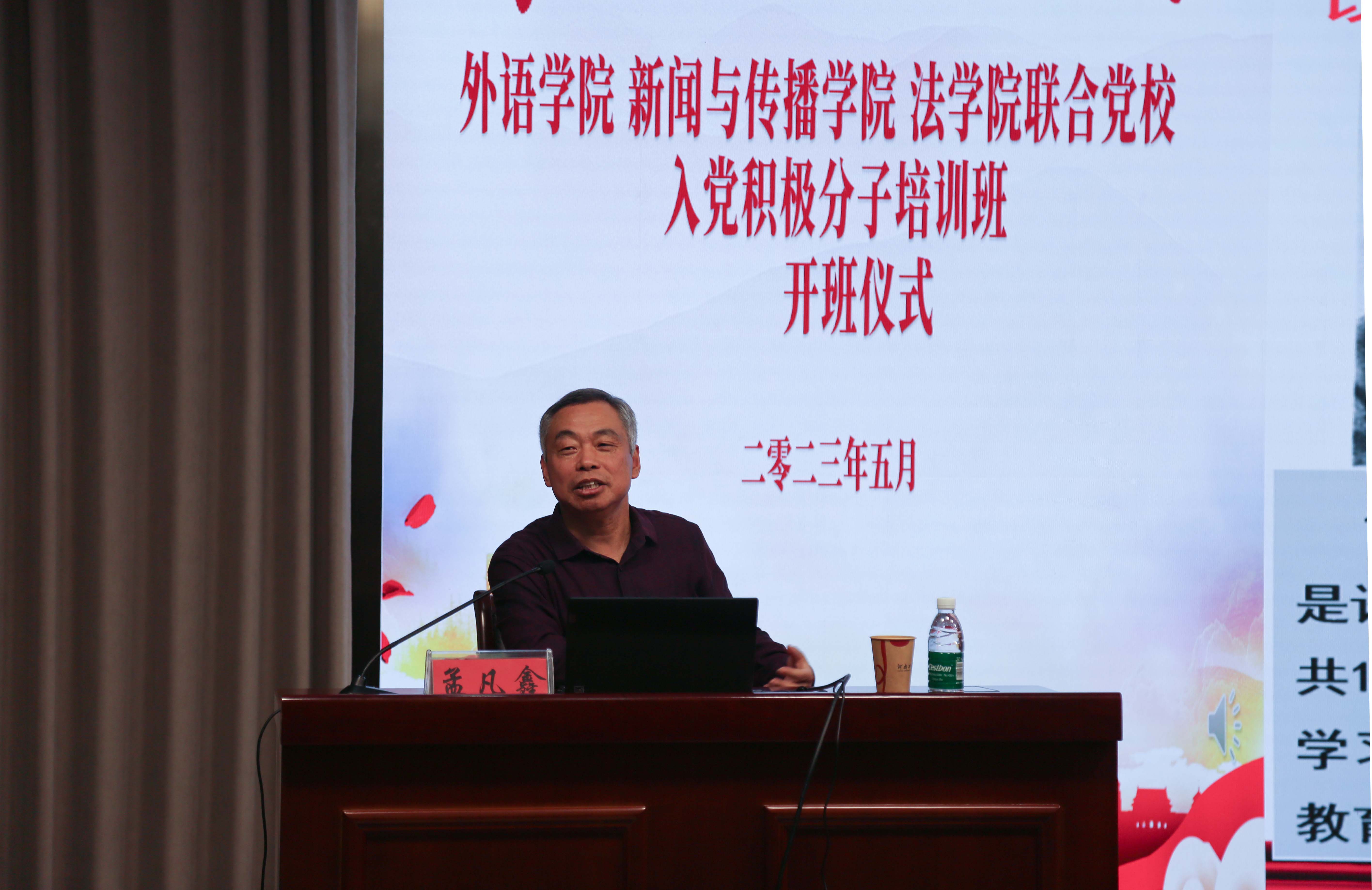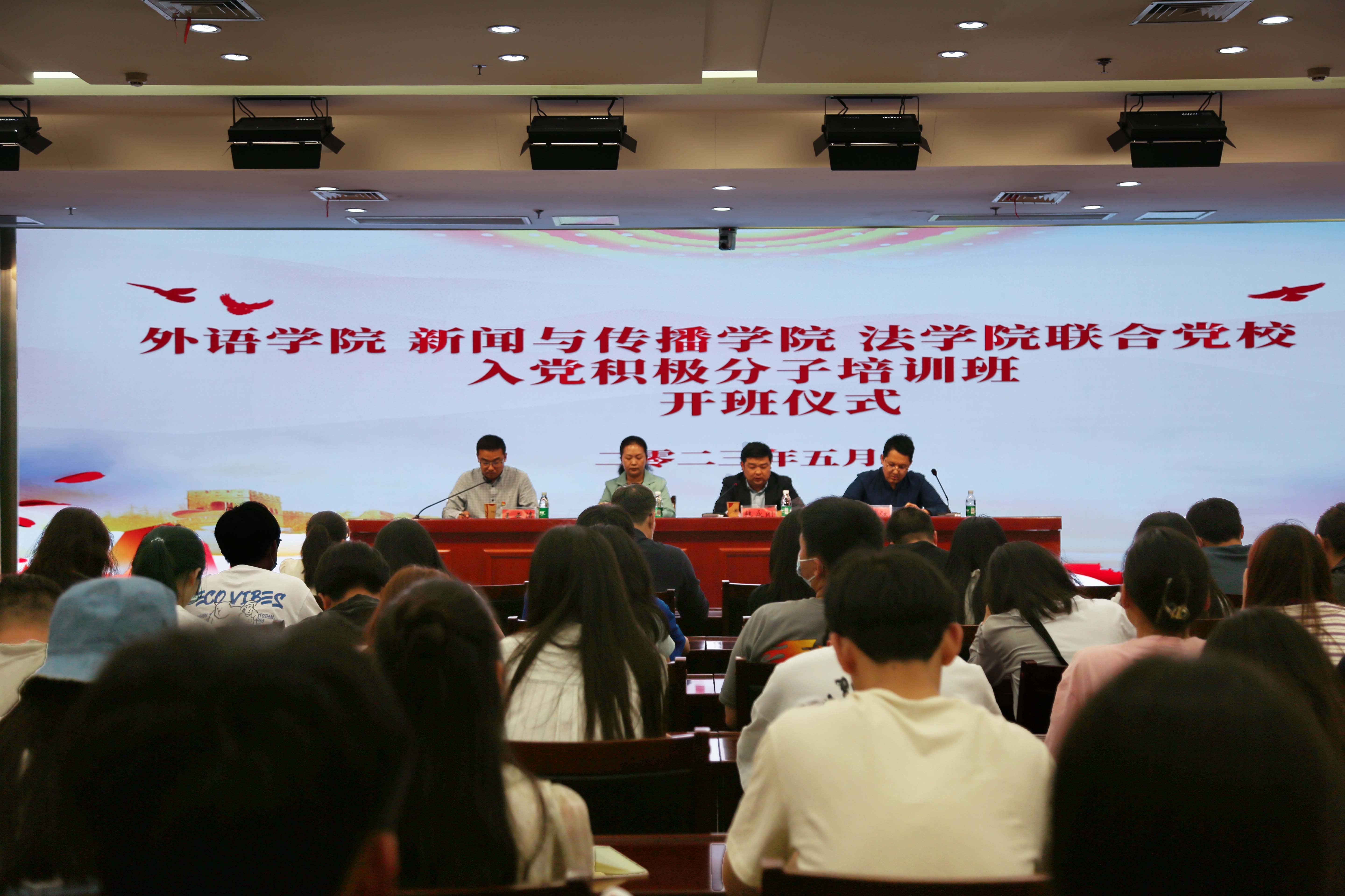 为深入学习贯彻习近平新时代中国特色社会主义思想,帮助入党积极分子提高思想认识、端正入党动机,5月12日下午,外语学院、新闻与传播学院、法学院联合党校入党积极分子培训班开班仪式暨首场党课授课在学术报告中心D205会议室隆重举行。外语学院、新闻与传播学院和法学院的有关领导,院团委的相关负责老师和本期培训班全体学员130人济济一堂,共同参加开班仪式。外语学院党委书记王云涛主持开班仪式。校党委组织部副部长张芳为开班致辞。学校正处级组织员刘会生、党委巡察办公室主任孟凡鑫两位老师带来首场党课。