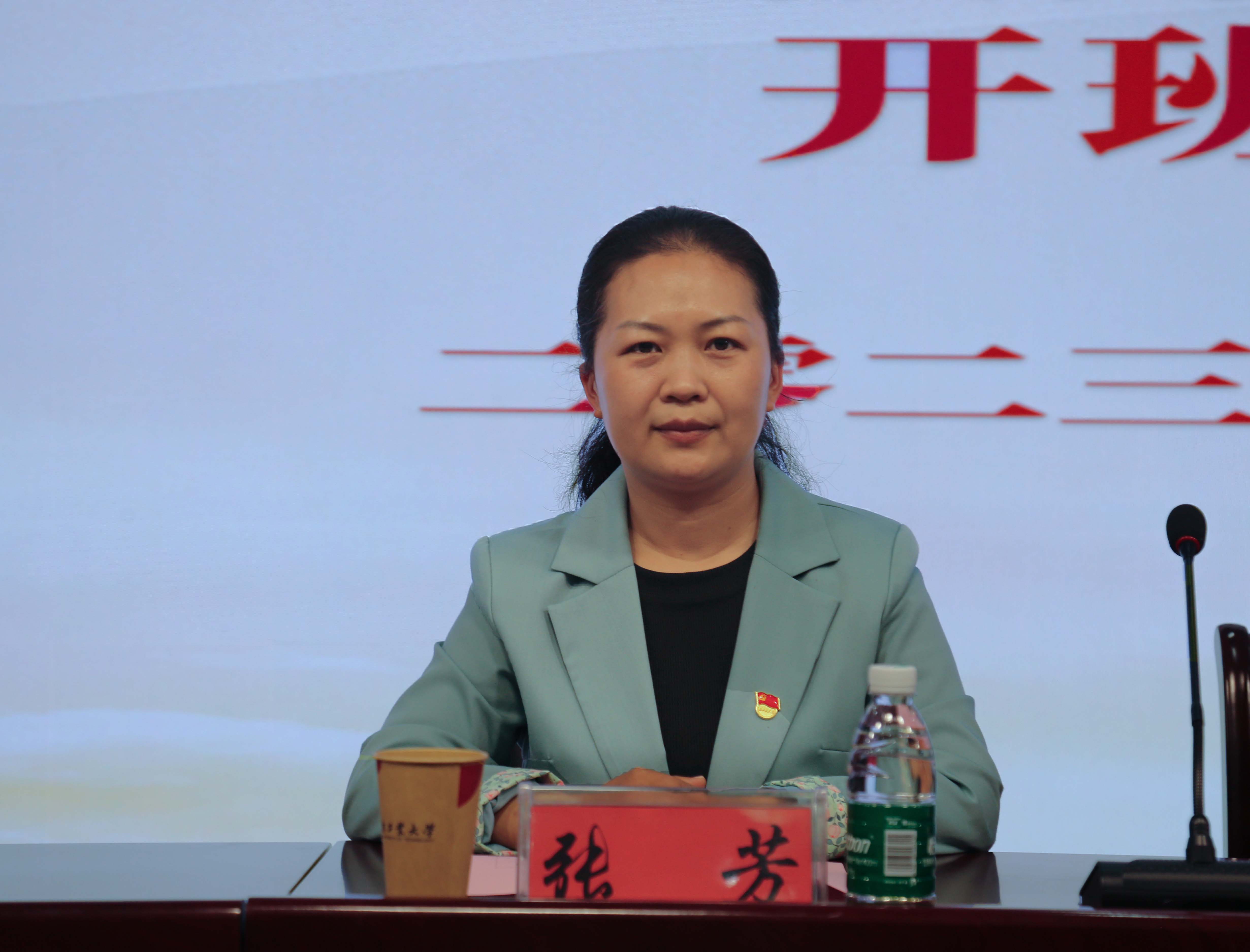党委组织部副部长张芳代表学校党校致辞,希望全体学员:一要坚定理想信念,将个人的人生蓝图融入到国家民族发展的宏图之中;二要认真学习党的二十大精神,担负起新时代中国青年的使命与责任;三要踔厉奋发、勇毅前行,学以致用、报效祖国,让青春在全面建设社会主义现代化国家的火热实践中绽放绚丽之花。