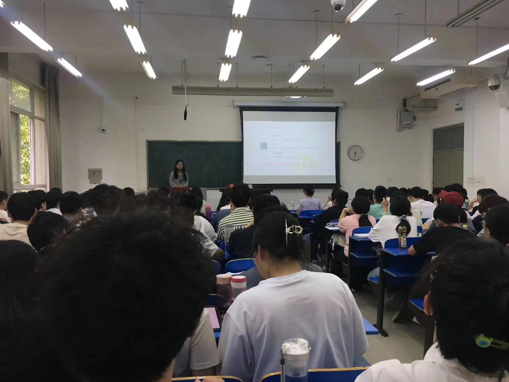 9位同学结合自己的切身经历向同学们讲述了考研的宝贵经验。他们认为,考研的成功等于正确的选择、科学的方法、不懈的努力、良好的心态以及恰当的复习材料,他们生动有趣的语言、清晰的条理赢得了同学们阵阵热烈的掌声。