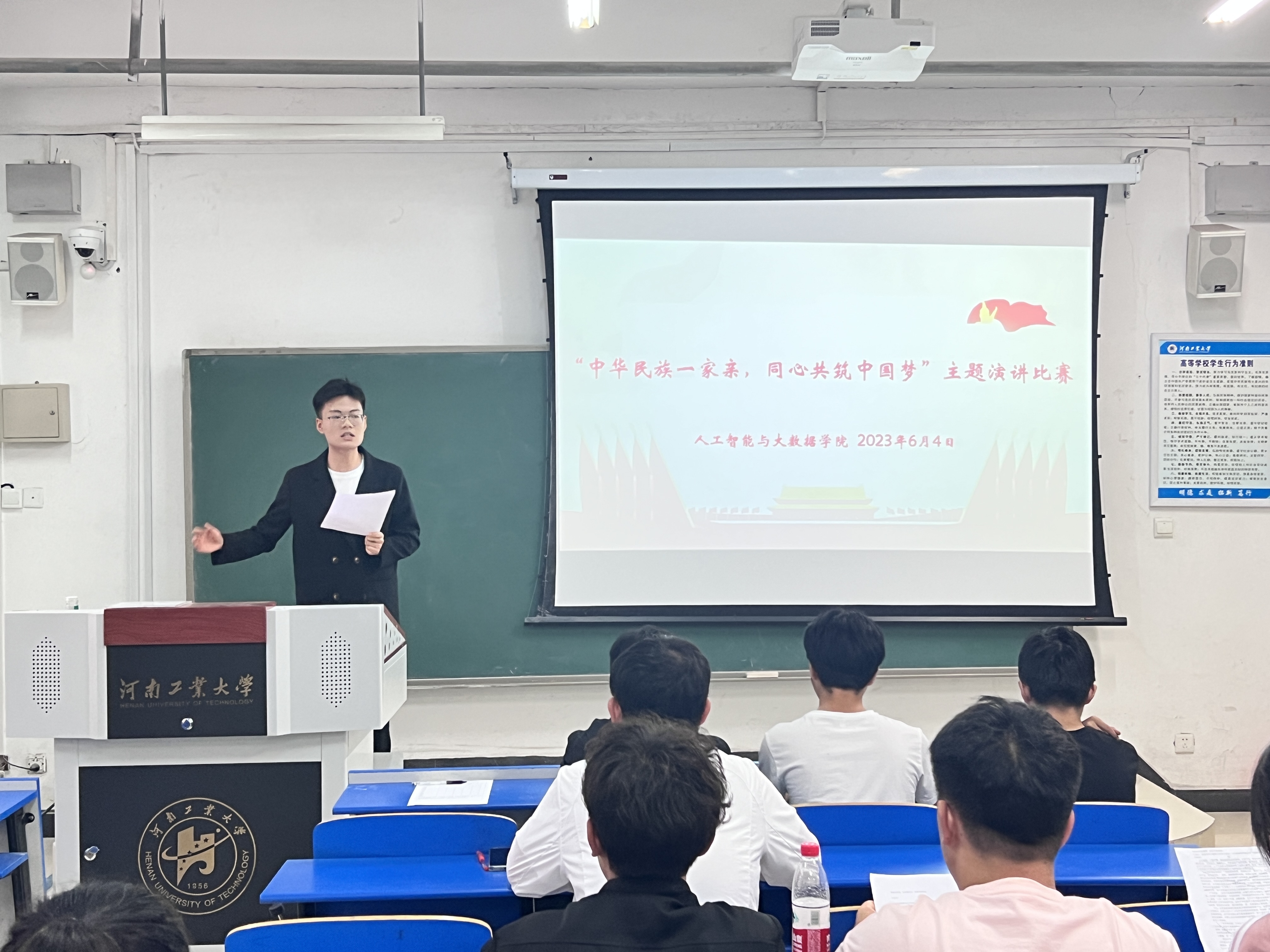 为深入学习领会习近平总书记关于加强和改进民族工作的重要思想,传承弘扬民族团结的伟大精神。人工智能与大数据学院学院开展“中华民族一家亲,同心共筑中国梦”系列活动。比赛前夕,学院各个班级分别举行班内选拔,每班评选出一名代表参加院级比赛。6月5日,学院在3105举办“中华民族一家亲 同心共筑中国梦”主题演讲比赛,学院团委副书记郑帅以及学生会干部担任本次比赛评委。