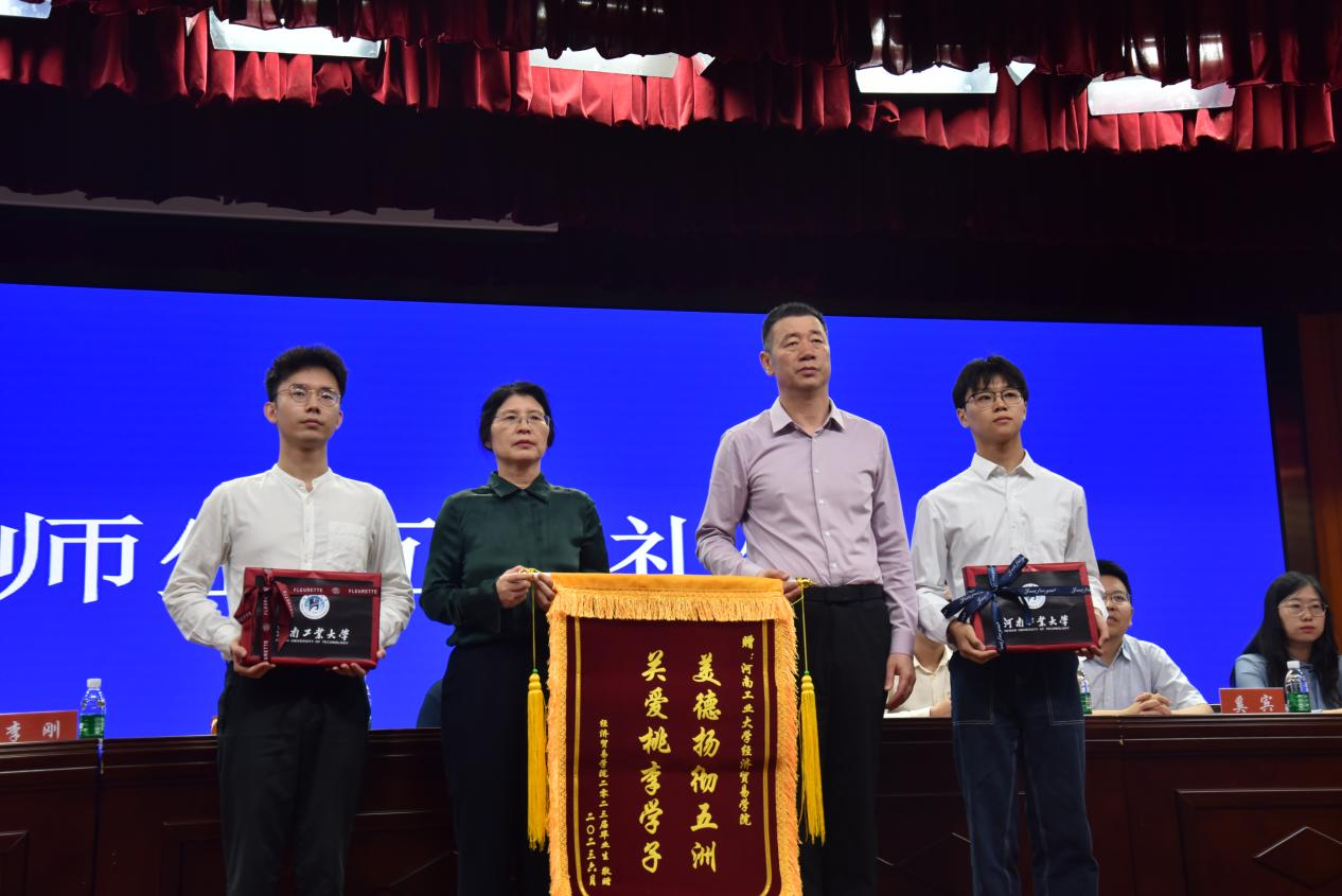 副院长朱坤林宣读了《关于经济贸易学院2023届优秀毕业生表彰的决定》。副院长李文启宣读了《关于经济贸易学院2023届毕业硕士研究生考取博士研究生的表彰决定》和《关于经济贸易学院2023届校友联络员的聘任决定》。随后,学院领导为受表彰学生颁奖,为校友联络员颁发聘书,并合影留念。