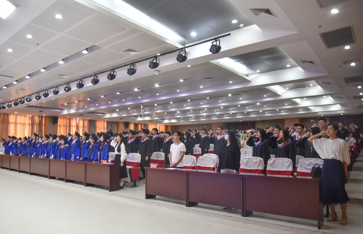 为感谢学院全体教师对毕业生的悉心教导,院长孙中叶和党委书记李刚代表学院接受毕业生赠送的锦旗,并向毕业生赠送纪念礼物。随后,全体毕业生起立,在老师的见证下,由毕业生王文龙领誓,共同进行庄严的廉洁从业宣誓。