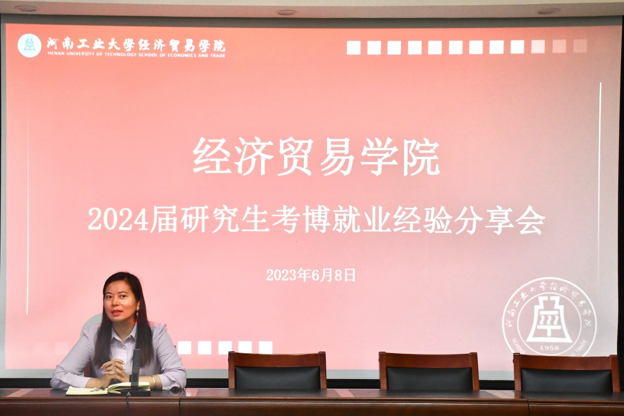 为了促使研究生树立正确的就业观念,提升就业质量,6月8日上午经济贸易学院在3605会议室召开2024届研究生考博就业经验分享会,院党委副书记岳鹏珍、辅导员张福勇、2023届优秀毕业生代表和2024届研究生参加了会议。会议由张福勇主持。