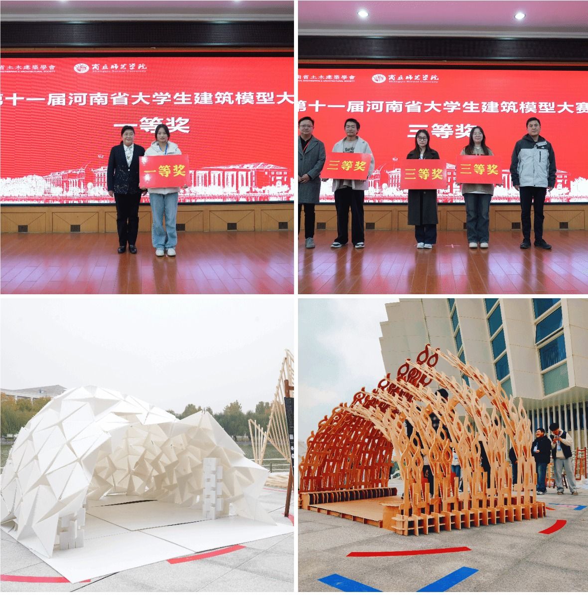 近日,由河南省土木建筑学会主办的“第十一届河南省大学生建筑模型大赛”在商丘师范学院圆满落幕。我校建筑学专业学子表现亮眼,在卢雪飞、简洁两位老师的共同指导下,两支参赛队伍分别斩获一等奖 1 项、三等奖 1 项,一举刷新我校近十年来在该项省内建筑类权威赛事中的最好成绩。