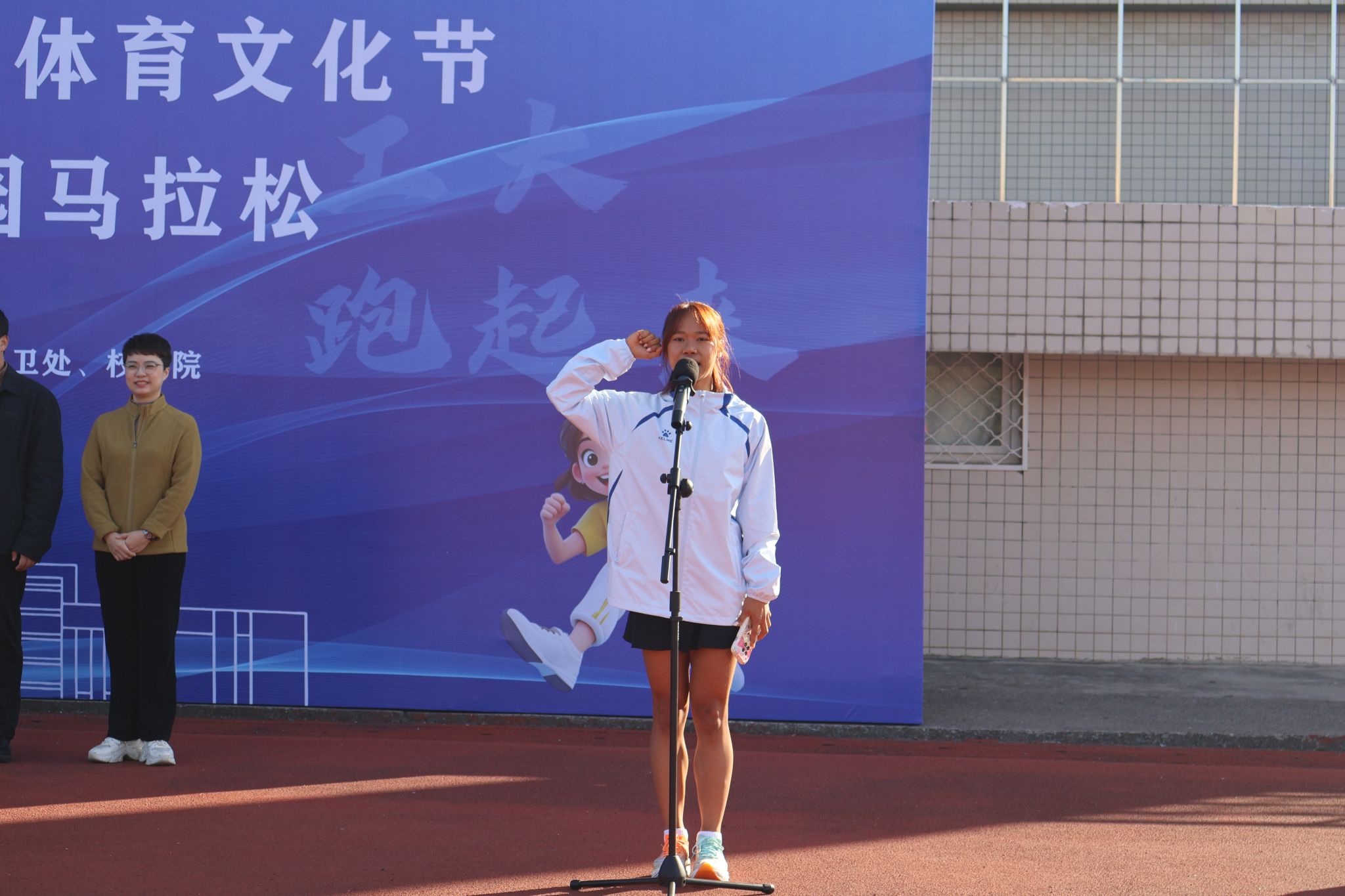 邓淼磊在致辞中指出,校园马拉松是我校深入贯彻落实习近平总书记关于教育的重要论述的生动实践。学校高度重视体育工作,始终把加强体育工作与全面贯彻党的教育方针,推进学校事业高质量发展紧密联系,持续深化体育教育教学改革,大力开展群体竞赛活动,推动体育教育教学质量和师生身体素质不断提升。他希望广大师生在奔跑中感悟挑战自我、超越极限、坚韧不拔、永不放弃的马拉松精神,以更好的身体、更大的热情、更高的效率,推动学校各项事业蓬勃发展。