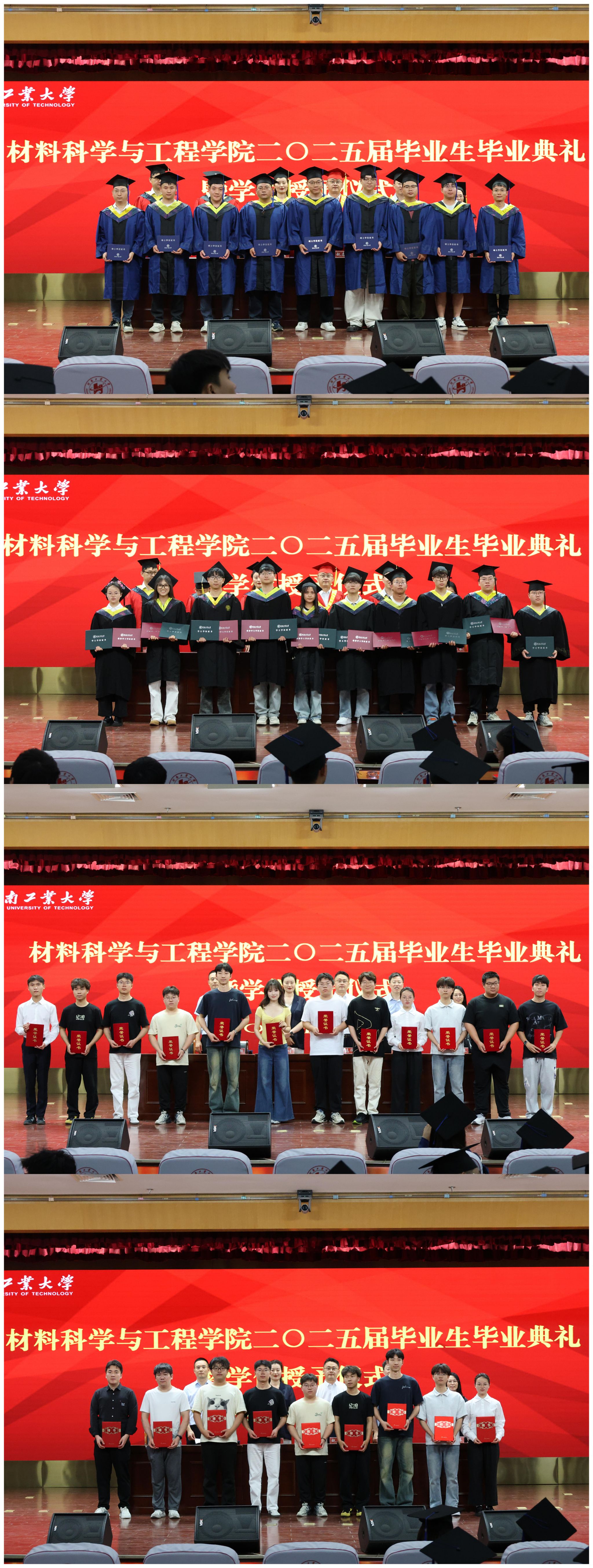 硕士毕业生代表韩碧波和本科毕业生代表王同亮分别代表全体研究生、本科毕业生发言,他们回忆起在材料学院的学习时光,从实验室里反复钻研的实验项目,到学科竞赛中团队协作的精彩瞬间,桩桩件件都是成长的见证。他们满怀感激地表示:“是学院为我们搭建了探索材料奥秘的平台,是老师教会我们严谨治学的态度。未来,我们必将以所学回馈社会,在材料领域开拓创新,展现出材料学子昂扬向上、不断拼搏的精神面貌。”