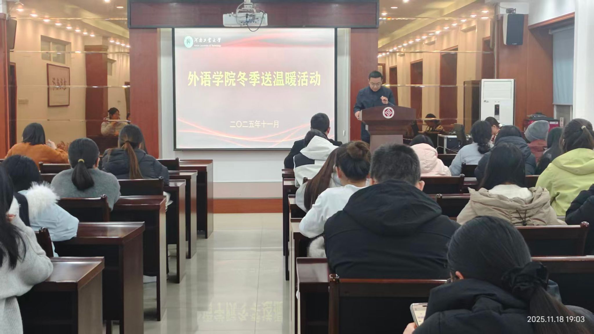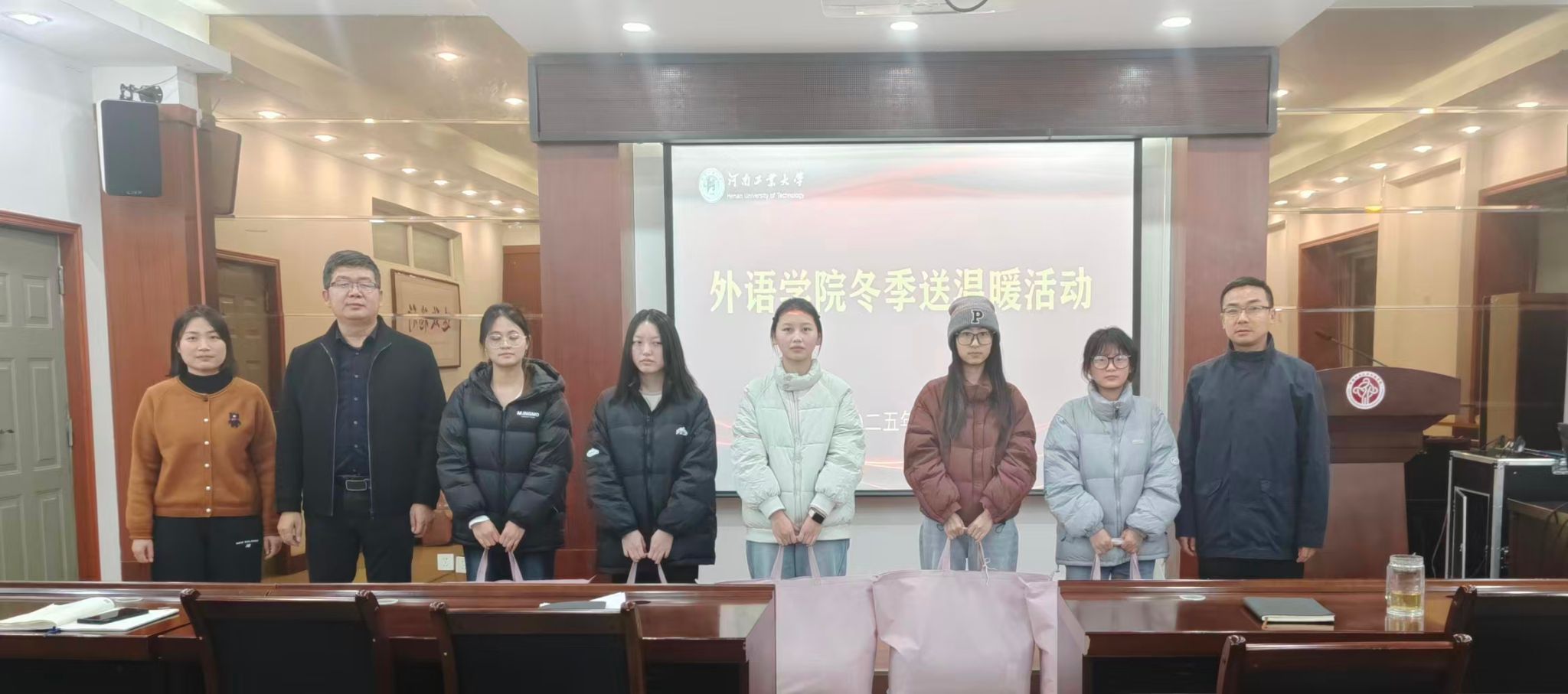 冬意渐浓,温情愈暖。11月18日,外语学院在博闻楼5225会议室开展冬季送温暖活动,学院党委书记王云涛、副书记王晓东、学工办主任郭珊珊及受资助学生代表参与本次活动。