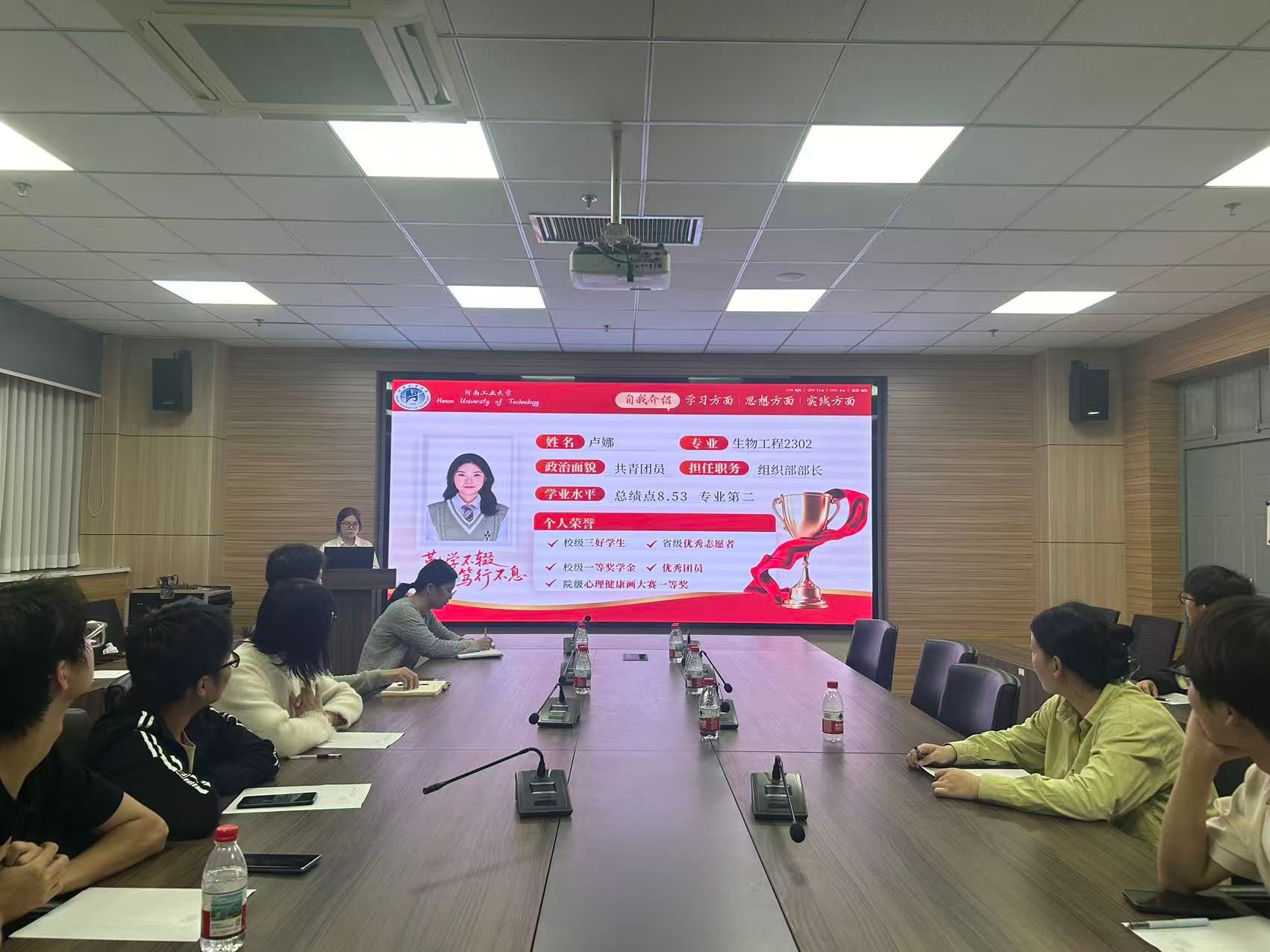 为贯彻落实国家资助政策,充分体现党和政府对大学生的关怀,选出最优秀的国家奖学金获得者,充分发挥榜样的示范引领作用,2025年9月24日—25日,生物工程学院在惟德楼1313会议室分年级举办了2025年国家奖学金答辩会。学院党委副书记蔡永平、学工办主任岳媛媛、各年级辅导员、学生代表及候选人参加了本次答辩会。