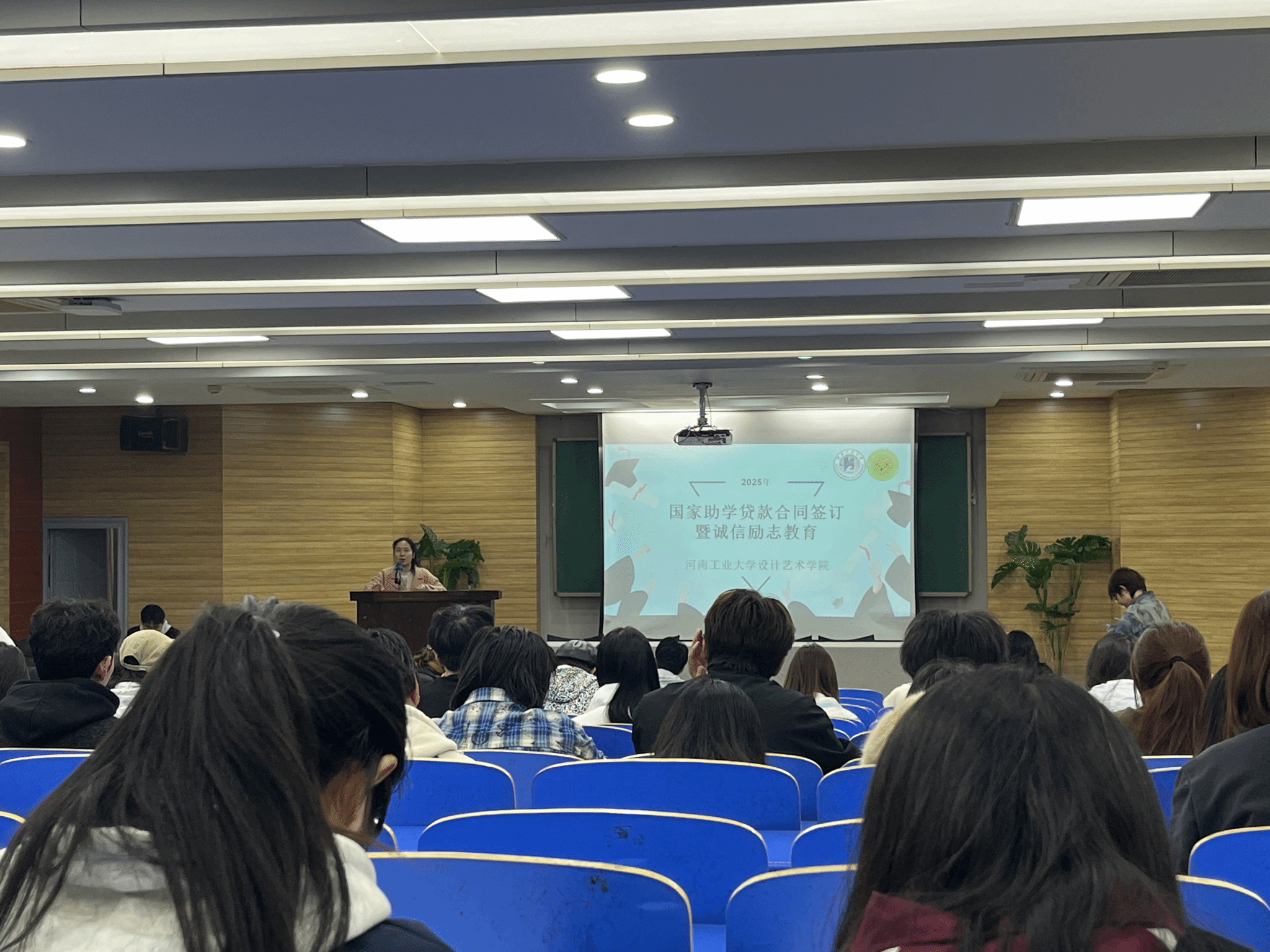 为了贯彻落实国家资助政策,强化学生诚信意识与责任担当,引导青年学子心怀感激、励志成才。11月3日,设计艺术学院在18018报告厅会议室隆重举行了2025年高校国家助学贷款合同签订暨诚信励志教育大会。此次会议,由学院学工办副主任陶双双老师、资助助理、生活部成员以及全体高校助学贷款学生共同参与。