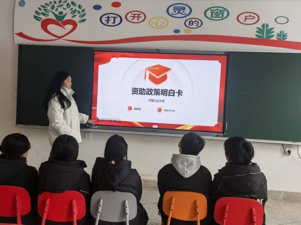 一场宣讲,连接两地情谊;一份分享,点亮逐梦微光。宣讲大使的脚步,遍布多所县域高中;他们的声音,传递着国家与学校的关怀。此次资助政策宣讲活动,是河南工业大学落实资助政策宣传要求的重要举措,打通了政策宣传的“最后一公里”,不仅让高中学生全面了解了国家与学校的资助政策,更传递了“知识改变命运、资助成就梦想”的信念。